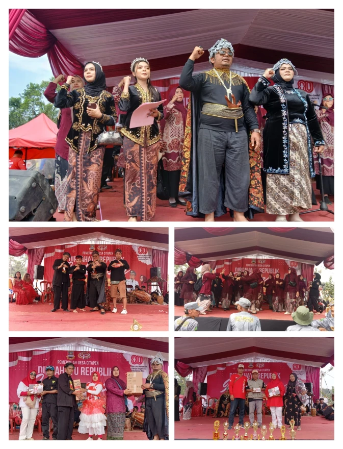 Senin, 18/08/2025 - Warga Desa Citapen Antusias mengikuti perayaan HUT ke-80 Kemerdekaan Republik Indonesia berlangsung meriah di Tanah Carik Desa Citapen, Kecamatan Cihampelas, Kabupaten Bandung Barat, Minggu dan Senin (17-18/8/2025). Mulai dari Do’a Bersama, Upacara Peringatan HUT-RI ke-80 Tahun 2025, dan berbagai perlombaan diselenggarakan untuk memeriahkan perayaan HUT RI tahun ini. Warga Desa Citapen turut berpartisipasi mengikuti perlombaan tersebut, serta antusias untuk menampilkan pentas seni dan budaya mulai dari kalangan anak-anak, remaja, hingga dewasa.